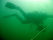 naechster Tauchgang an der Svendborgsund, im Innenraum nur Milchsuppe :( Schade, in 2000 war es innen glasklar