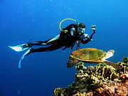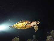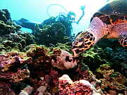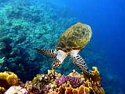 Karettschildkroete auf Nahrungssuche (fressen z.B. gern Weichkorallen )