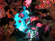 Rotmeer-Wimpelfisch in einer kleinen Hoehle