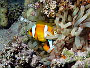 Lederanemone mit einem Rotmeer-Anemonenfisch