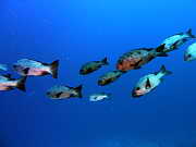 ein Schwarm schwarz-weisser Schnapper