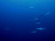 lang erwartet taucht eine Schule von 12 Hammerhaien auf....