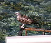 ein Fischadler auf dem Gelaender des alten Leuchtturmes