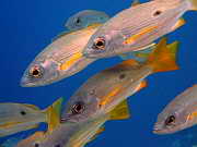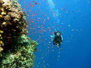 auf dem Riffdach sind bei wenig Wind und Welle immer viele Fische