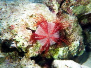 ein Bischhofsmuetzen-Seeigel beim Nachttauchgang