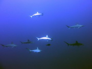 am naechsten Morgen sind sie da, grosse Bogenkopfhammerhaie