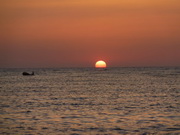 die Sonne versinkt im Meer und faerbt den Himmel kitschig rot