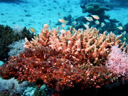 Juwelenzackenbarsch zwischen vielfingrigen Lederkorallen