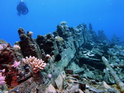 Wrack der Heaven 1, die ausbrannte, nachdem zu duenne Stromleitungen Feuer fingen...