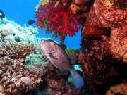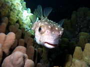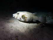 grosser Igelfisch beim Nachttauchgang