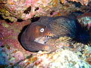 die Netzmuraene in ihrem stachligen Versteck