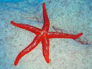 ein Seestern leuchtet mit seinem kraeftigem Rot