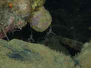 Spinnenschnecke schaut vorsichtig unterm Gehaeuse hervor