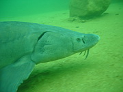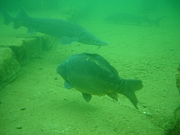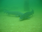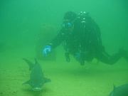 die Sicht ist durch viele Taucher, die sich zu den Stoeren legen, teilweise getruebt