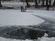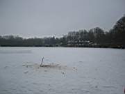 die Eisschollen wurden anschliessend wieder in die Loecher geschoben, wo sie innerhalb weniger Minuten wieder festfroren, die Absperbaender entfernt und bis auf ein wenig Streusand und ein freigeschobenes Dreieck erinnerte nichts mehr an uns Taucher...