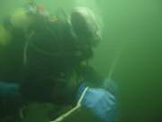 das einzige Lebewesen waehrend des 13-minuetigen Tauchgangs, eine Teichmuschel