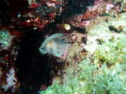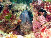 Oktopus, der sich in eine Felsvertiefung drueckt