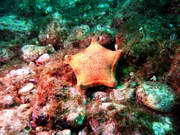 ein purpurroter Seestern mit Flecken erkundet das Riff