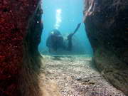man kann durch viele Grotten, Spalten und Durchbrueche tauchen