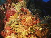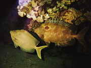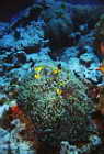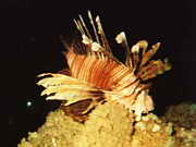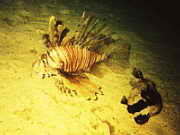 Rotfeuerfisch zusammen mit einem Maskenkugelfisch