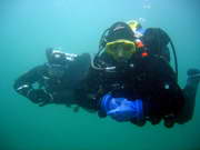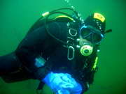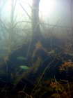Der Schachtsee 1 ist mit 24m der tiefste, der drei Steinbrueche, Schachtsee 2 (17m) ist nur mit bergsteigerischen Ambitionen zu erreichen ( im Moment auch sehr aufgewuehltes Wasser, da hier Wasser fuer einen nahegelegenen aktiven Steinbruch entnommen wird). Schachtsee 3 ist mit max 14m der flachste der drei. Die Sichtweiten liegen je Anzahl der Taucher und Jahreszeit zwischen 5 und max. 15 Metern. Es gibt Fisch in den Steinbruechen, allerdings nicht viel - ich habe bisher Barsche, Karauschen, Karpfen, Ploetzen und Schleien gesehen, dass muessen aber nicht alle Fischarten sein, die es hier gibt. Folgend einige Eindruecke: