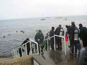 Ordnung muss sein, Anstehen zum Tauchen, auf der anderen Seite nur Taucher, die den Tauchgang beendet haben