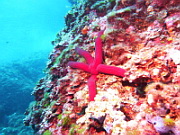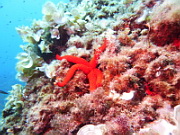 schoener Farbkontrast Sternseeigel und Seegras (Posidonia)
