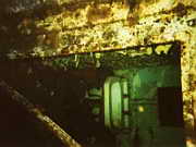 Koffer mit Dreiradrad, Radio und Wellblech - alles liegt herum, als ob die Salem eben erst gesunken waere