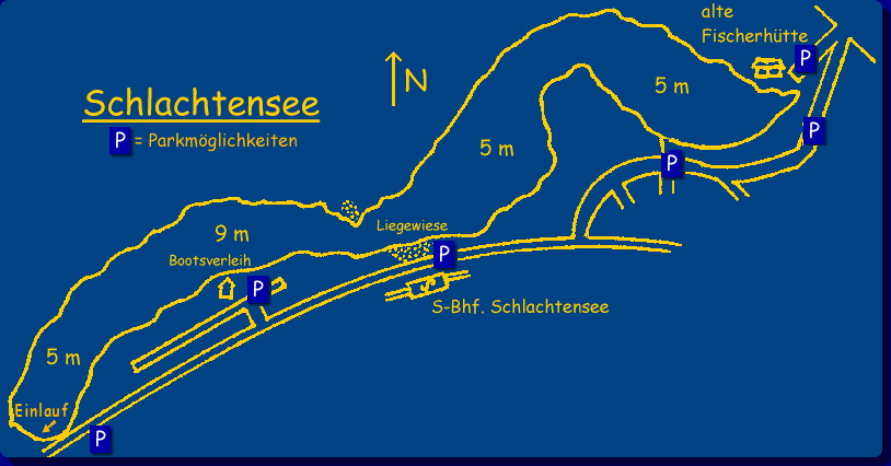 Der Schlachtensee wird mit gereinigtem Wasser aus der Havel gespeisst und hat daher eine sehr gute Wasserqualitaet. Der Einlauf befindet sich am suedoestlichen Ende des Sees.