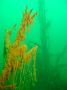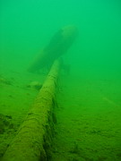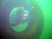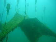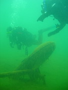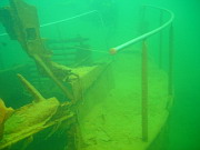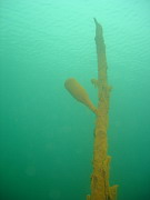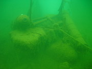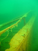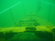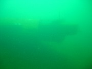 das Wrack des ehemaligen Dampfers erscheint im Gruen