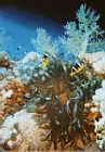 zwei Clownfische bewachen ihre Anemone