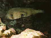 ein grosser Igelfisch aeugt hervor