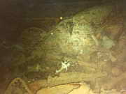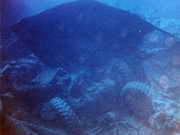 das Wrack ist in unbetauchbare Tiefen abgerutscht, zurueck blieben Wrackteile und ein ganzer Haufen Sanitaerkeramik ...