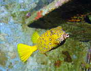 dieser kleine Kofferfisch weiss wohl nicht, wo er da so rumschwimmt...
