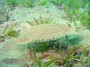 kleiner Plattfisch ergreift die Flucht