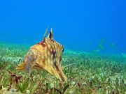 Pyramidenkofferfisch ueber Seegras