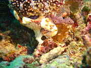 gut getarnt sitzt auch dieser Anglerfisch zwischen den Korallen