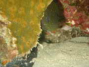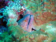kleine Muraene schlaengelt sich durchs Riff