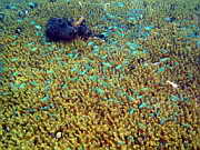 Gewusel von kleinen Fischen zwischen den Aesten einer Koralle