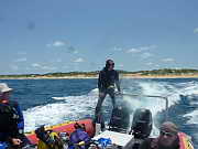 Zwischen den Tauchgaengen oder als separate Walhaitour (Oceansafari von TofoScuba) wird im Sueden von Tofo vor Tofino nach Walhaien gesucht und dann mit ihnen geschnorchelt. Geraetetauchen waere hier Quatsch, da die Walhaie teilweise eine ordentliche Geschwindigkeit drauf haben.