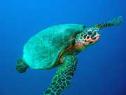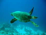 dann der Blick ins Blaue und da begleitet uns eine Suppenschildkroete
