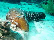 eine schwarze Seegurke filtert den Sand nach Fressbarem