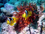wieder ein paar Rotmeeranemonenfische in einer rosanen Anemone (schon recht selten zu finden)