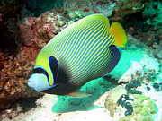 ein Kaiserimperatorfisch patrouilliert am Riff