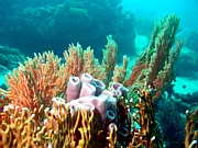 dieser Siphonschwamm hat sich zwischen der Feuerkoralle und einer Gorgonie eingenistet