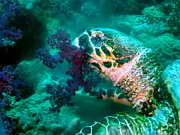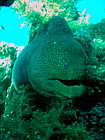 eine kapitale Riesenmuraene kommt neugierig naeher