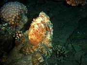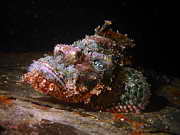 dieser baertige Skorpionfisch bewacht die Ueberreste eines kleinen Fischerbootes
