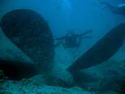 ...endlich das erste (und auch gleich schoenste) Wrack - die Schraube der Thistlegorm und Ewaa ;)