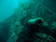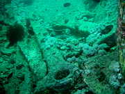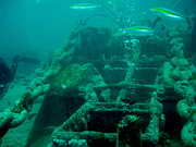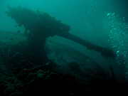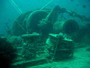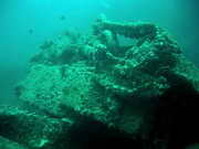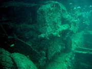 die grossen Ankerwinden dienen auch heute noch der Befestigung, obwohl extra Ankerbojen um das Wrack herum existieren