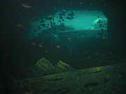 auch ein Schwarm Hoehlenbeilbauchfische bewohnt das Wrack der Thistlegorm